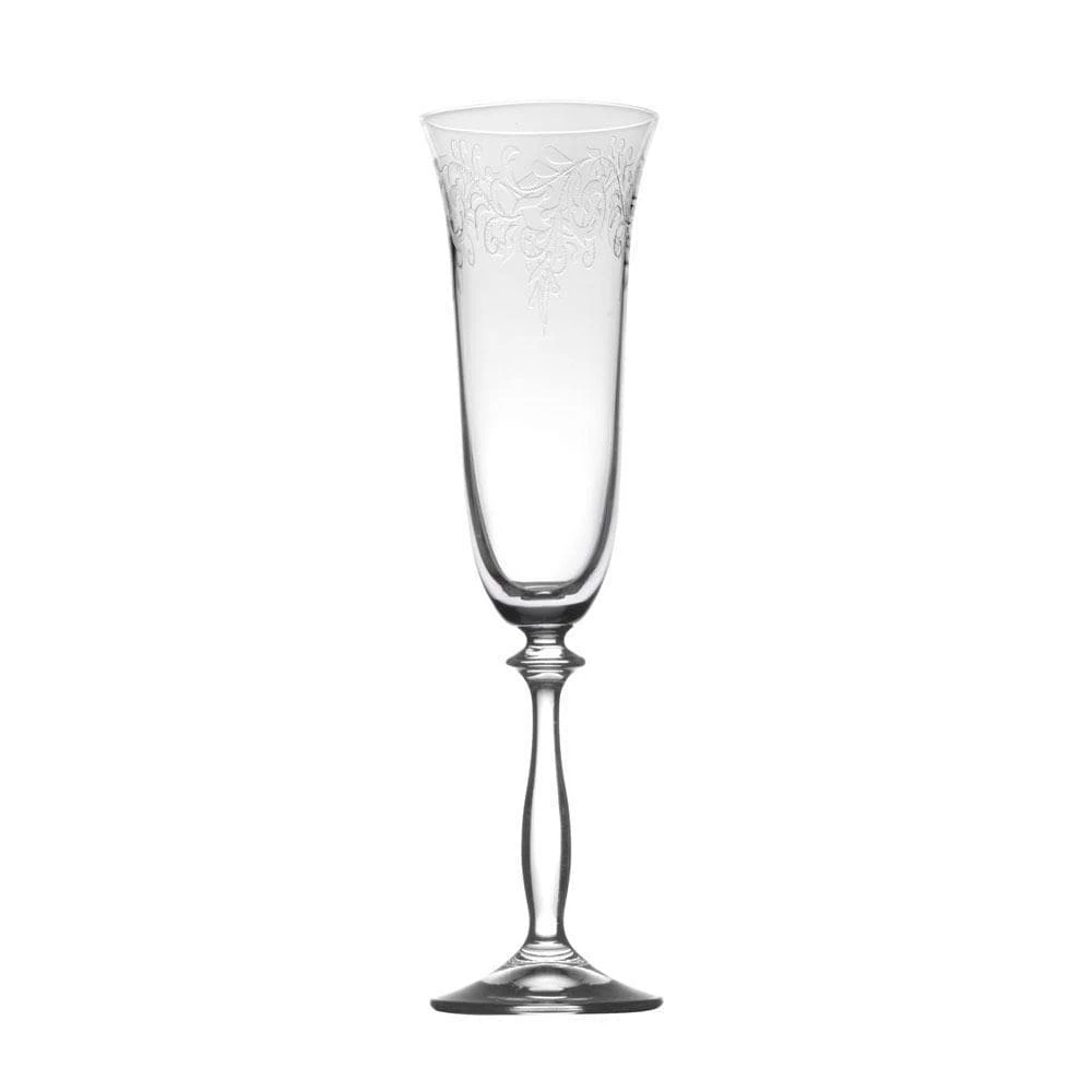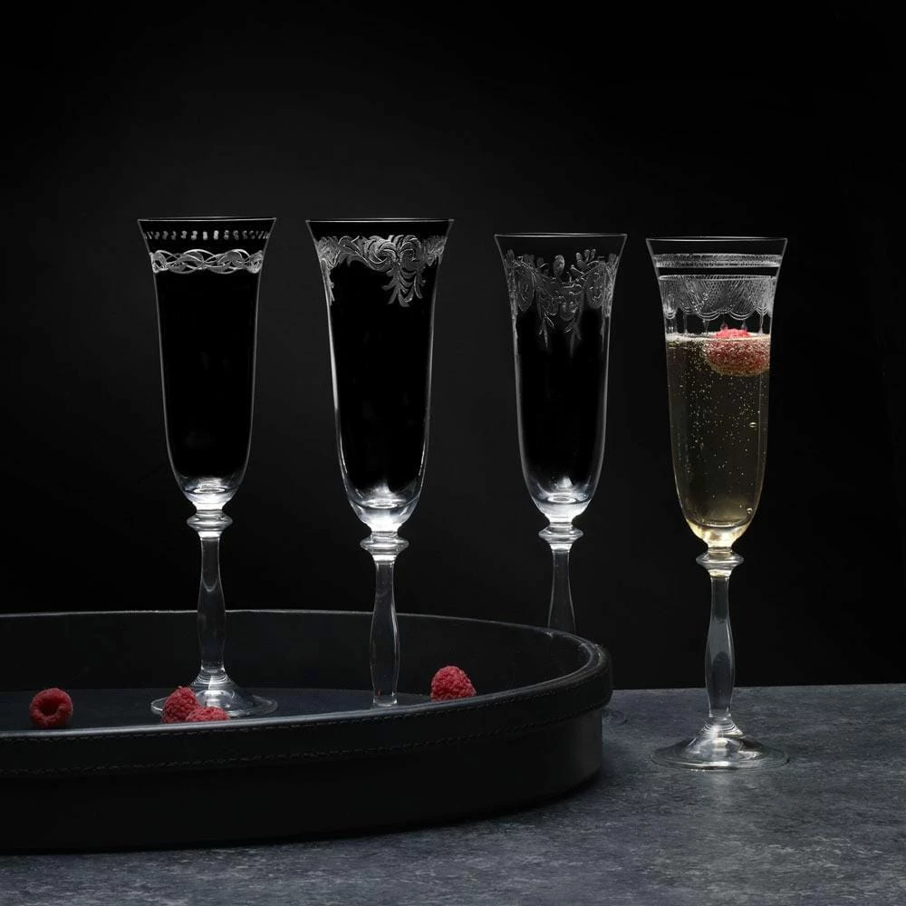 This Mikasa Amelia Set of 4 Flute Glasses features a highly detailed, lace-like pattern that elevates the presentation at all your gatherings. Each glass has a unique design, creating an eclectic and subtly ornate style on the table and allowing individuals to easily identify their glass.