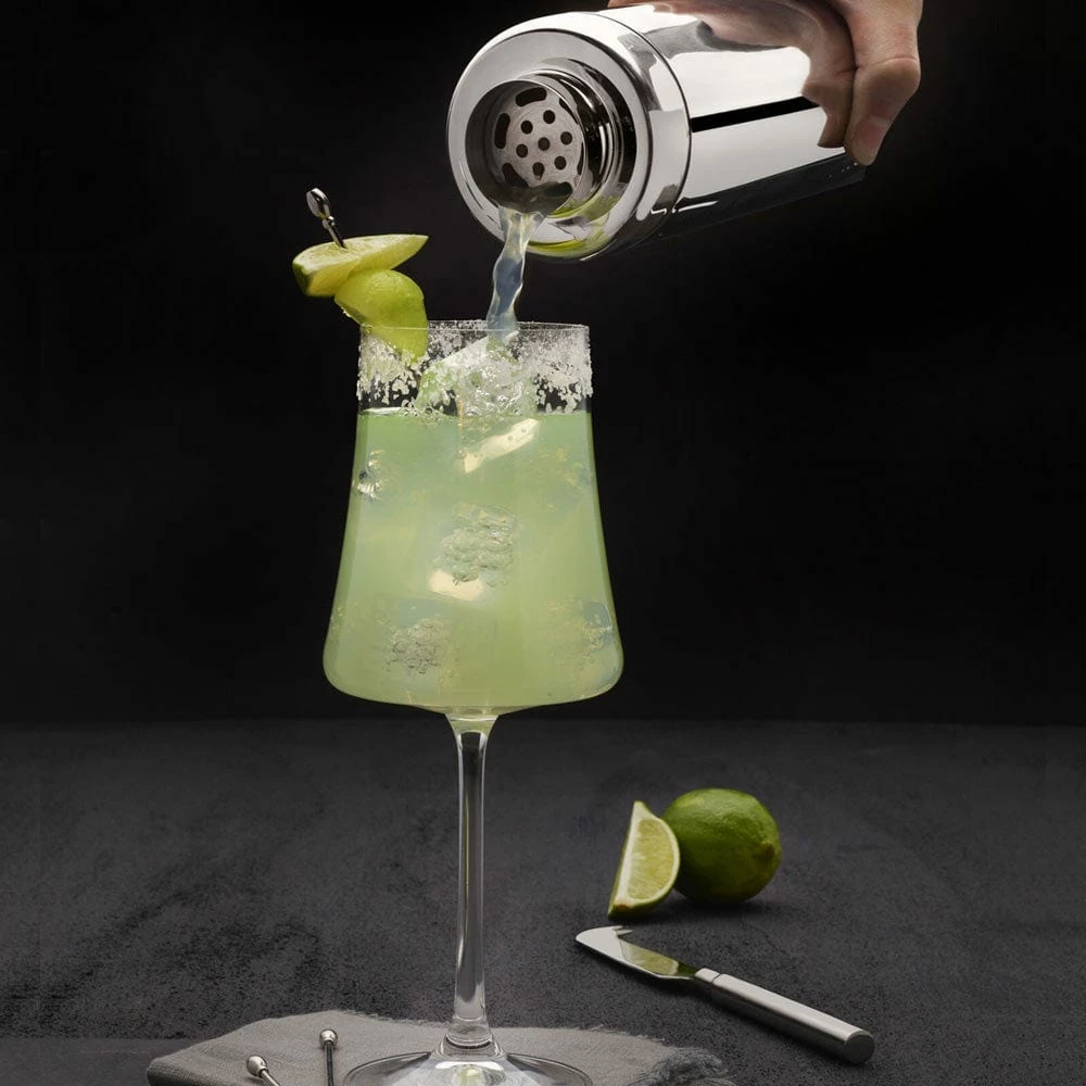 This Bliss Bar Tool Set includes everything you need to stir up delicious drinks to get the party started. The stylish acacia wood stand features slots for all the tools, including a shaker, cap lifter, bar knife, strainer, muddler, double jigger, and ice tongs, and will add an elegant addition to your home bar.