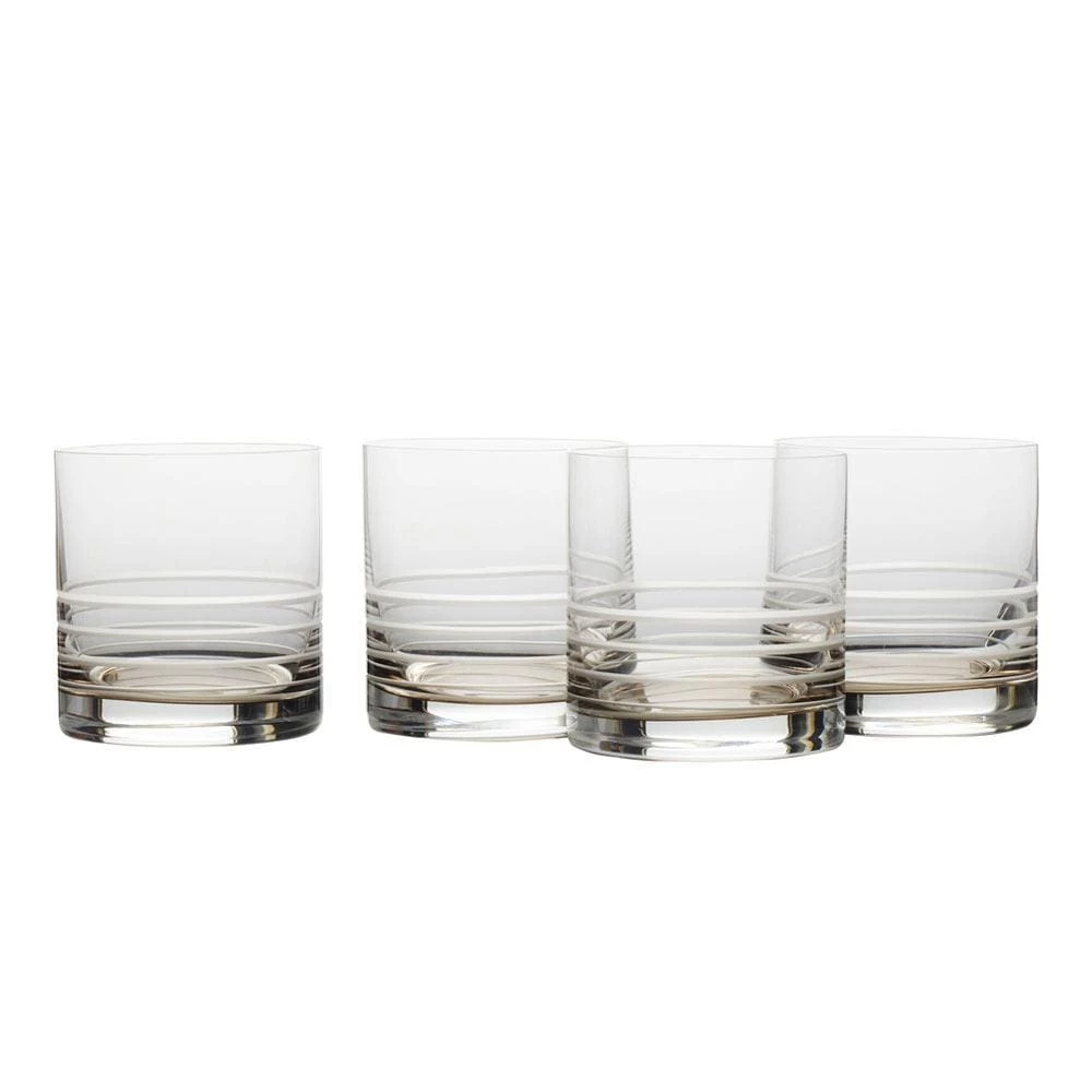 Bring a fresh look and a splash of color to any occasion with this Mikasa Cal Set of 4 Double Old Fashioned Glasses. These stylish and contemporary glasses are highlighted by a smoke tint that begins at the base and fades upward into distinct, horizontal cut lines, creating a visually arresting effect.