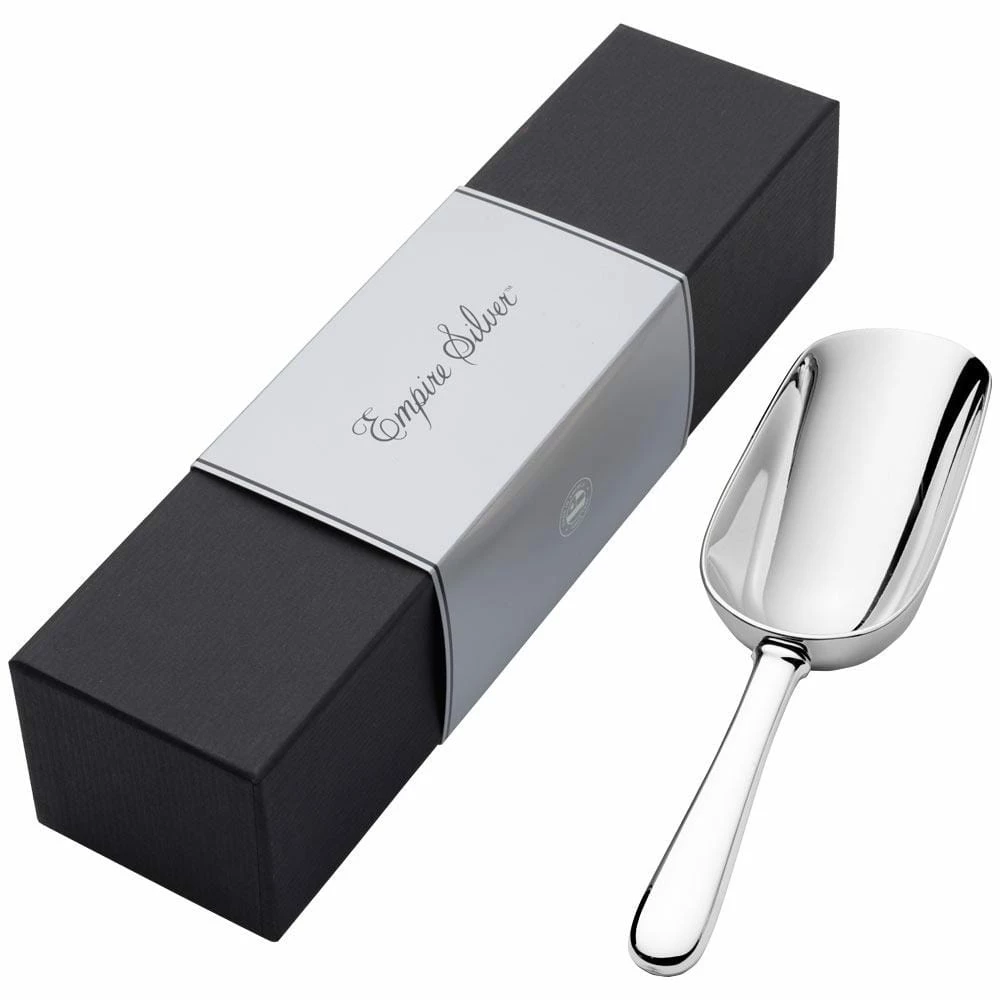 The Empire Silver Classic Ice Scoop is an elegant execution of form and function. The sleek handle design provides an ideal background for engraving. An essential home bar accessory. Made in America and crafted of sterling silver. Ice scoop measures 8-1/4 inch long.