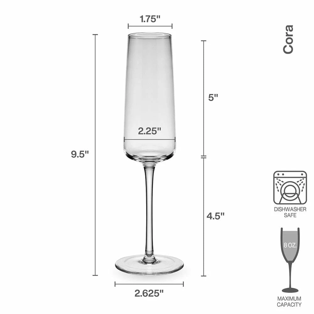 This Cora Flute Glass Set features unexpected curves that flare outward to wide bases, with tapered tops designed to capture the bouquet of wine and spirits to heighten your experience.