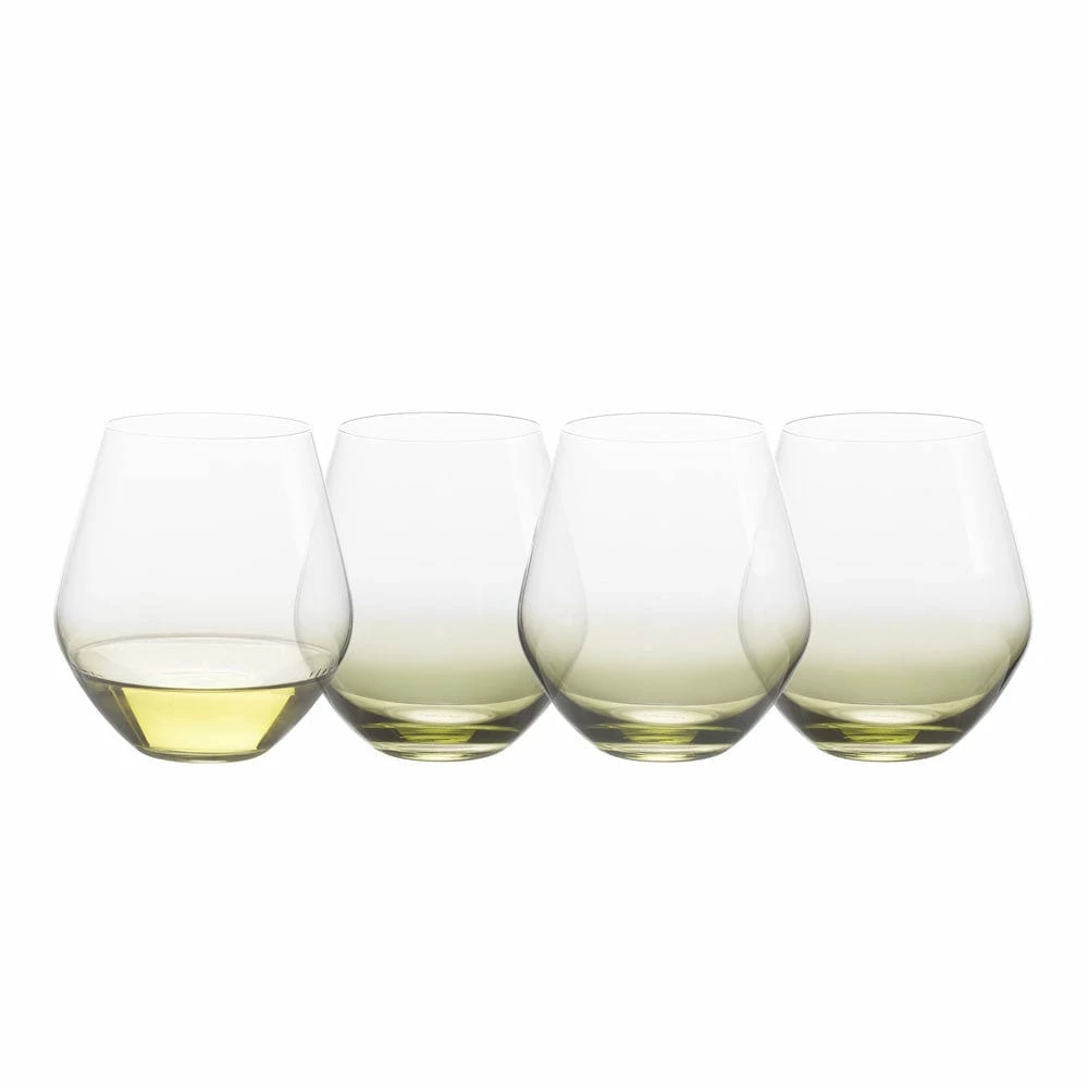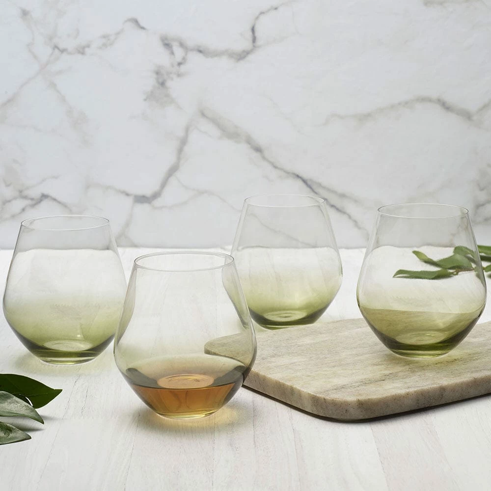 This Gianna Ombre Sage Stemless Wine Glass Set is perfect for enjoying your favorite wines and spirits any time with classic style. Features a traditional shape, with a subtle sage, ombre fade effect, making them perfect for pairing with casual or formal dinnerware.