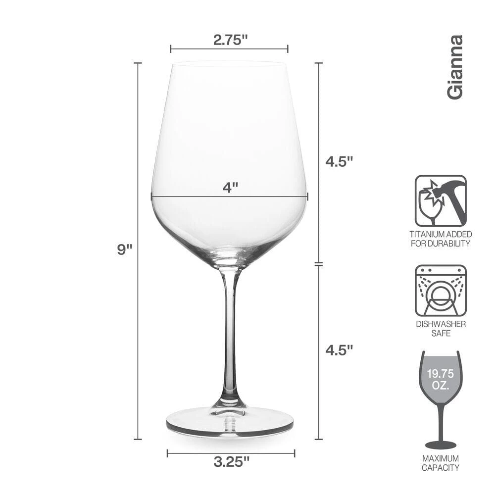 This Mikasa Gianna Set of 6 Red Wine Glasses are perfect for casual entertaining. Enjoy better tasting wine with our everyday crystal wine glasses. Crafted of lead-free crystal. Dishwasher safe. Set of 6 red wine glasses, each holds 19-3/4 ounces.