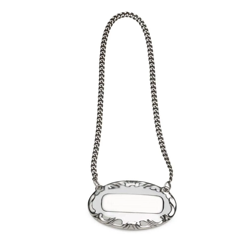 Add elegance to your home bar with this Empire Silver Liquor Label. This liquor label includes a silver chain to hang around the neck of your decanter. Bring the luxury of sterling to your cocktail hour for elegance and sophistication. Crafted of sterling silver. Made in America. Liquor label measures 1-3/4 inch wide x 1 inch high.